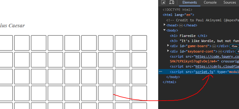 By pressing F12 to see that the site runs “script.js”, let’s open it up.