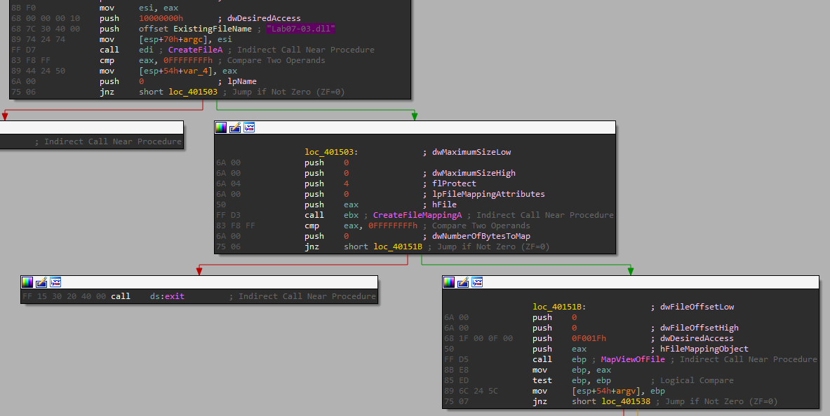 - (CreateFileA) Open the file: “Lab07-03.dll”