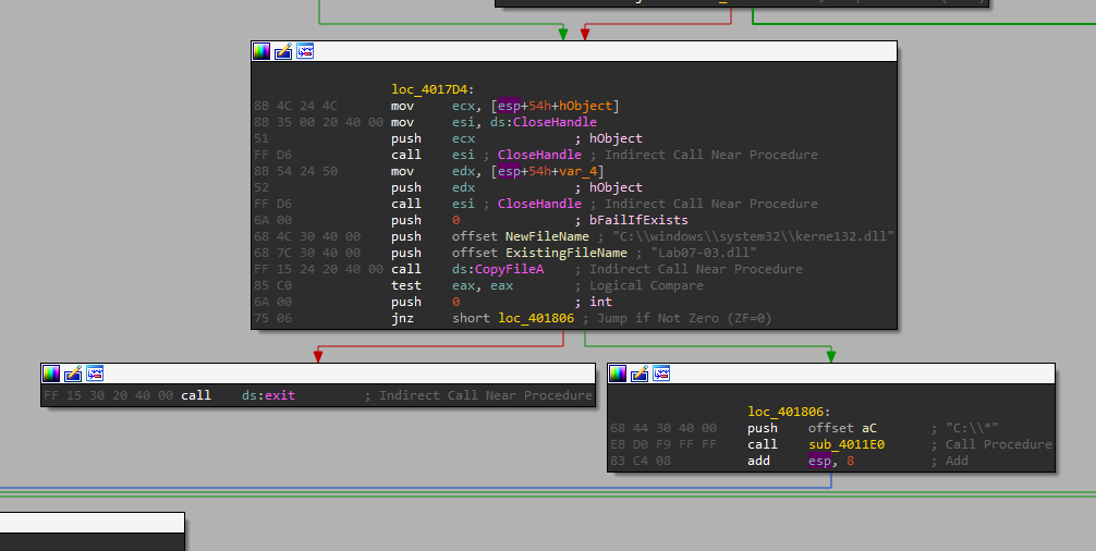 - lpExistingFileName: “Lab07-03.dll” - The mallicous DLL file.