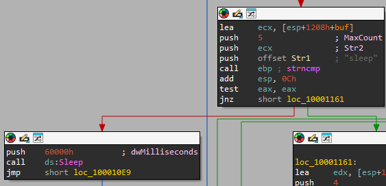 - If “exec” is sent: We can see a call to CreateProcessA.