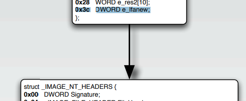 So we can see it is accessing 0x3C, in the format it says that at that offset is “e_lfanew” - which is the starting address of the NT Headers.