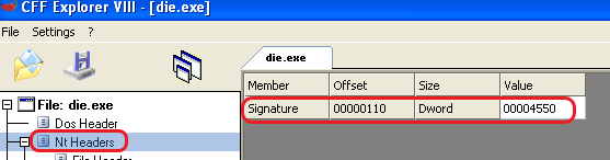 And as we can see if we move to the NT Headers, the PE signature is at offset 0x110 where “e_lfanew” pointed to.