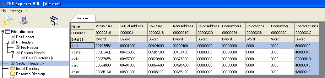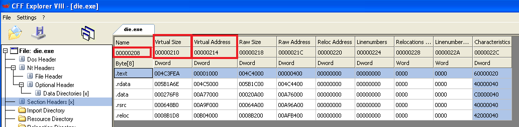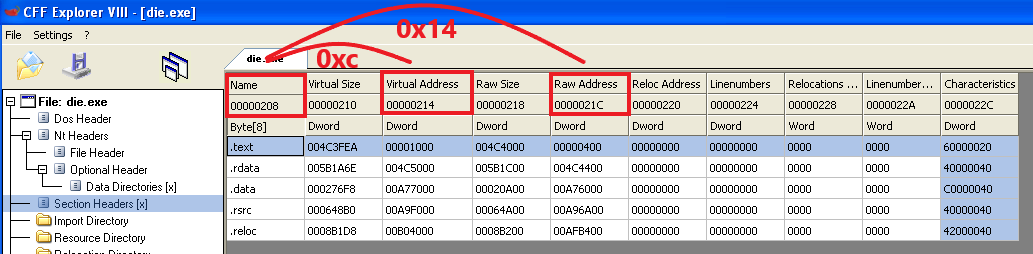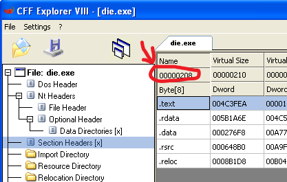 If we want to avoid those calculations, we can use a program like “CFF Explorer” that can parse PE headers and we can easly calculate offsets there like that: