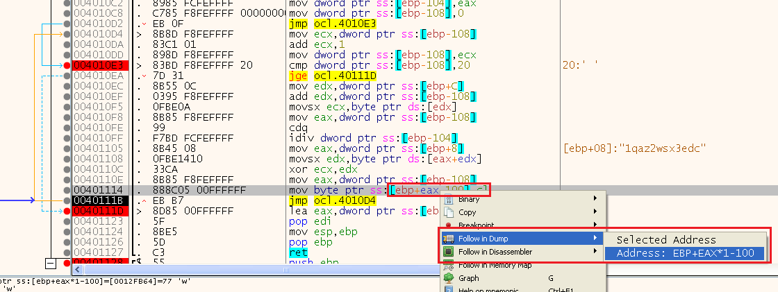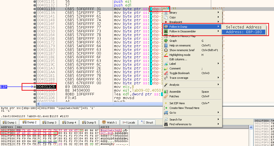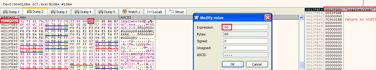 - an address to the string: “1qaz2wsx3edc” (The other string it builded)
