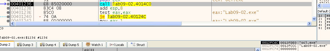 Analyze the malware found in the file Lab09-02.exe using OllyDbg to answer the following questions.