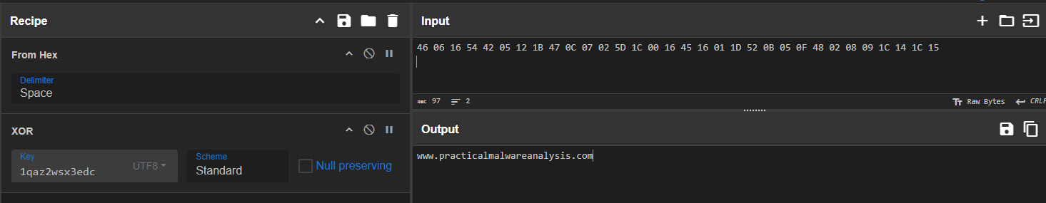 Decrypted: “www[.]practicalmalwareanalysis[.]com”