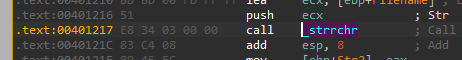 Right after it, we can see a call to 0x401550, and it passes 0x5C and the PATH of our file.