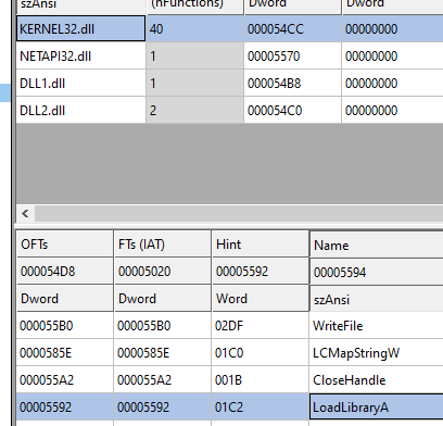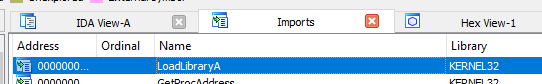 Now we can see that in Kernel32.dll the function LoadLibraryA is also imported: