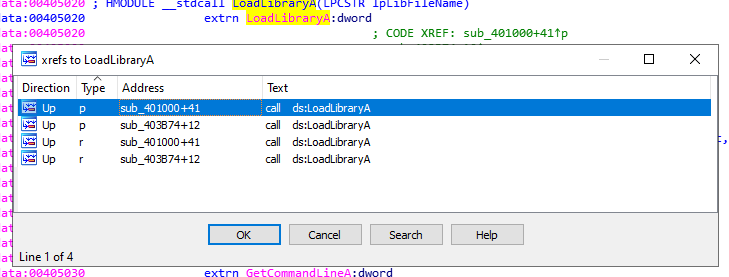 Let’s open the exe in IDA and xref LoadLibraryA in order to check for other DLLs that are possibly loaded, so let’s go to imports and double click the function: