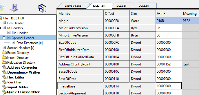 To check the base address requested by those DLLs, we open them in CFFExplorer and go to: Optional Header -> ImageBase