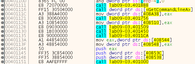 Analyze the malware found in the file Lab09-03.exe using OllyDbg and IDA Pro. This malware loads three included DLLs (DLL1.dll, DLL2.dll, and DLL3.dll) that are all built to request the same memory load location. Therefore, when viewing these DLLs in OllyDbg versus IDA Pro, code may appear at different memory locations. The purpose of this lab is to make you comfortable with finding the correct location of code within IDA Pro when you are looking at code in OllyDbg.