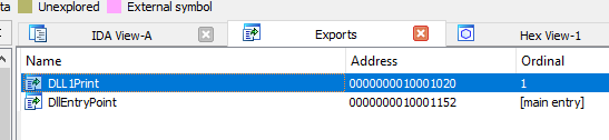 We can then disassemble it with IDA by opening the DLL, we then go to the “Exports” and double click “DLL1Print”: