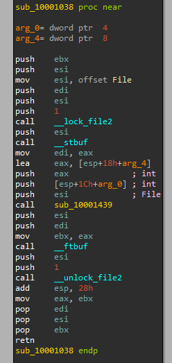 We can see that we pass 2 parameters to sub_10001038, one of them is a string format:
