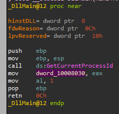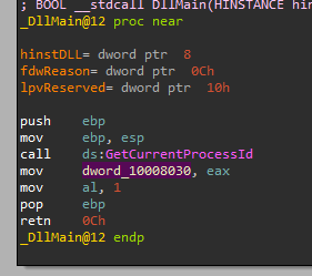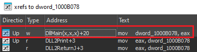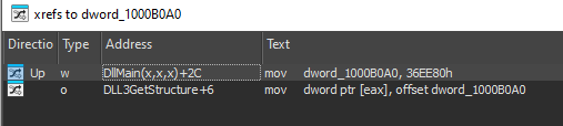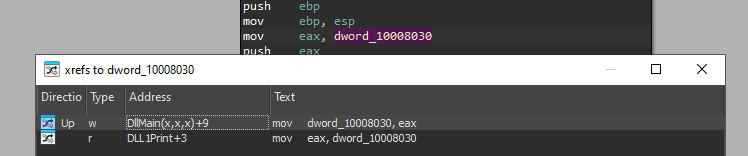 If we check for xrefs to dword_10008030, we can see it is being written to in DLLMain: