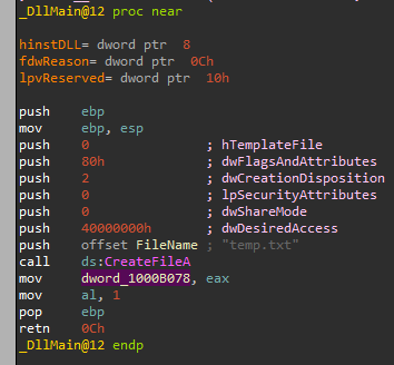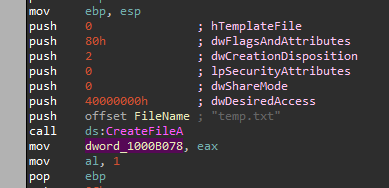 And we can see that it opens a file named “temp.txt” or creates it if it doesn’t exist.