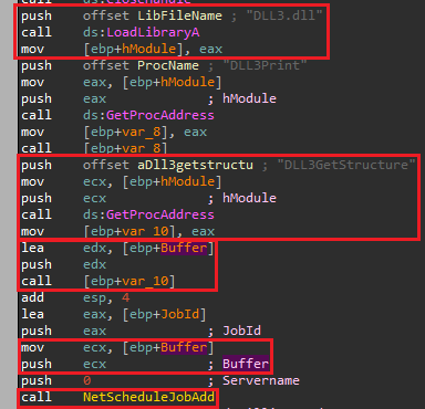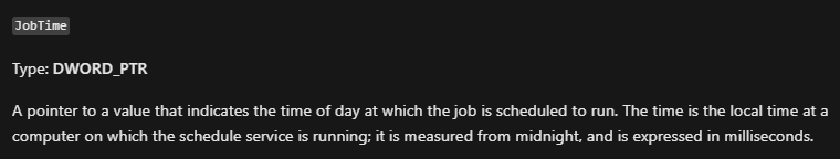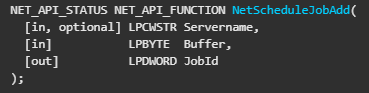 So we can see it is being set to “36EE80”, if we want to understand more about this value, we need to read more about the second parameter of the function NetScheduleJobAdd: