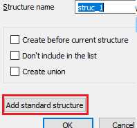 Now we want to add a new structure, so we press INSERT to add it, then select “Add standard structure”: