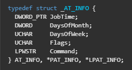 We can see that the address 0x1000B0A0 (dword_1000B0A0) was JobTime because it was the first member of the struct AT_INFO. Let’s understand now what will run and when: