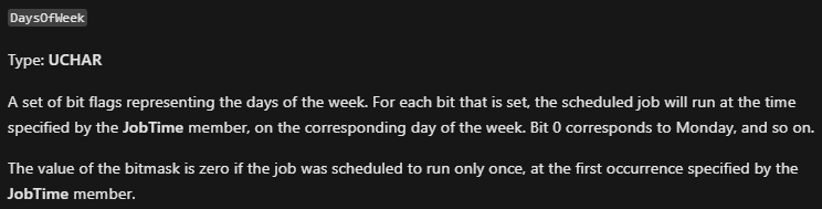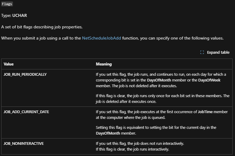 Nice! So we can see that based on our flags (0x11), it has set:- JOB_RUN_PERIODICALLY
