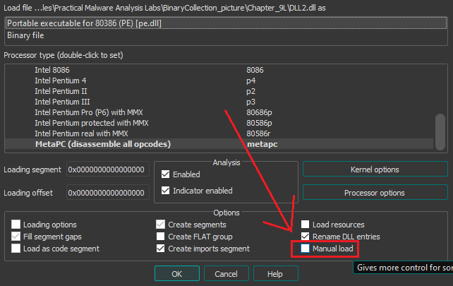 Start by ticking the “Manual load” option, when we load the file to IDA:
